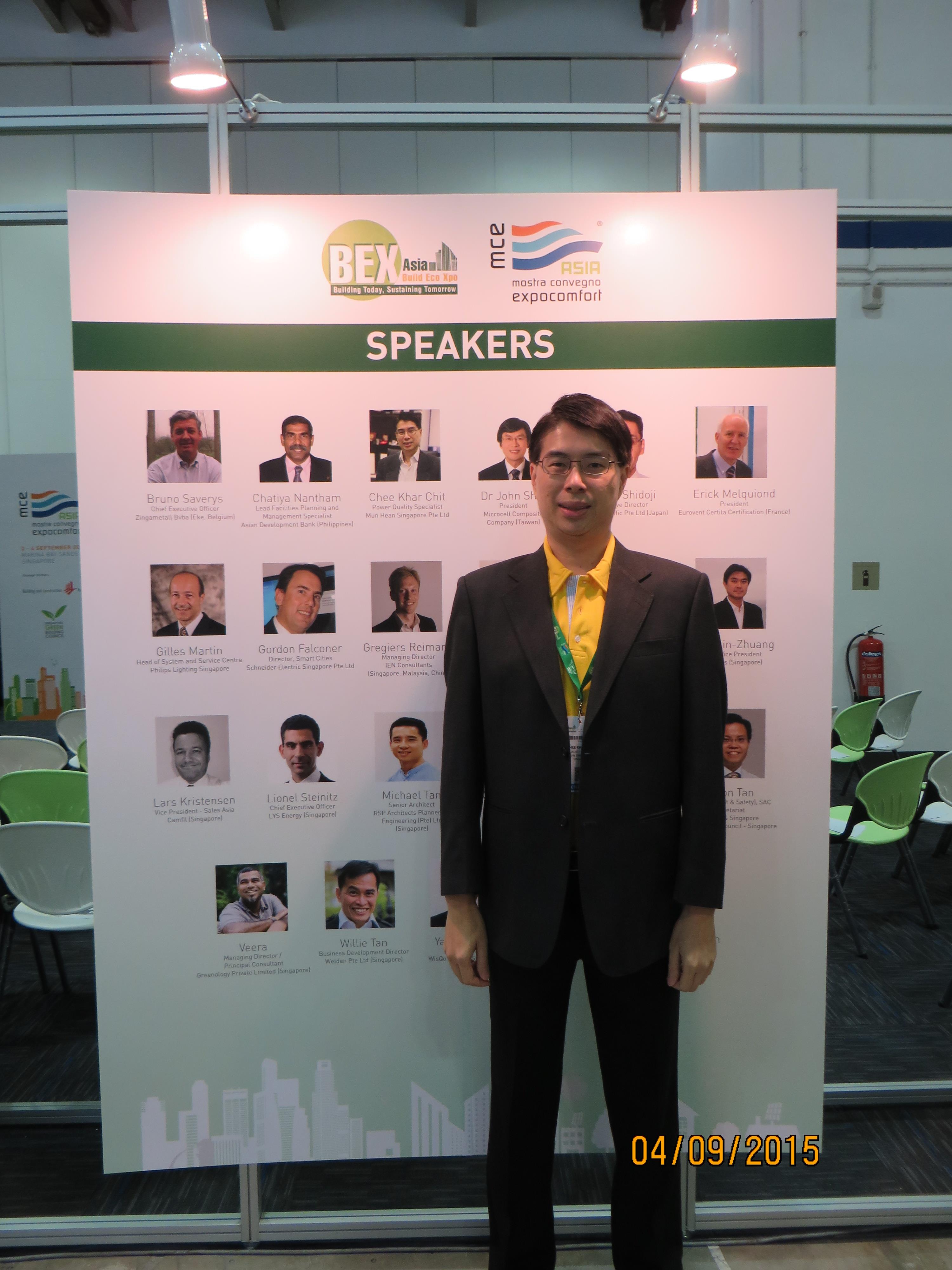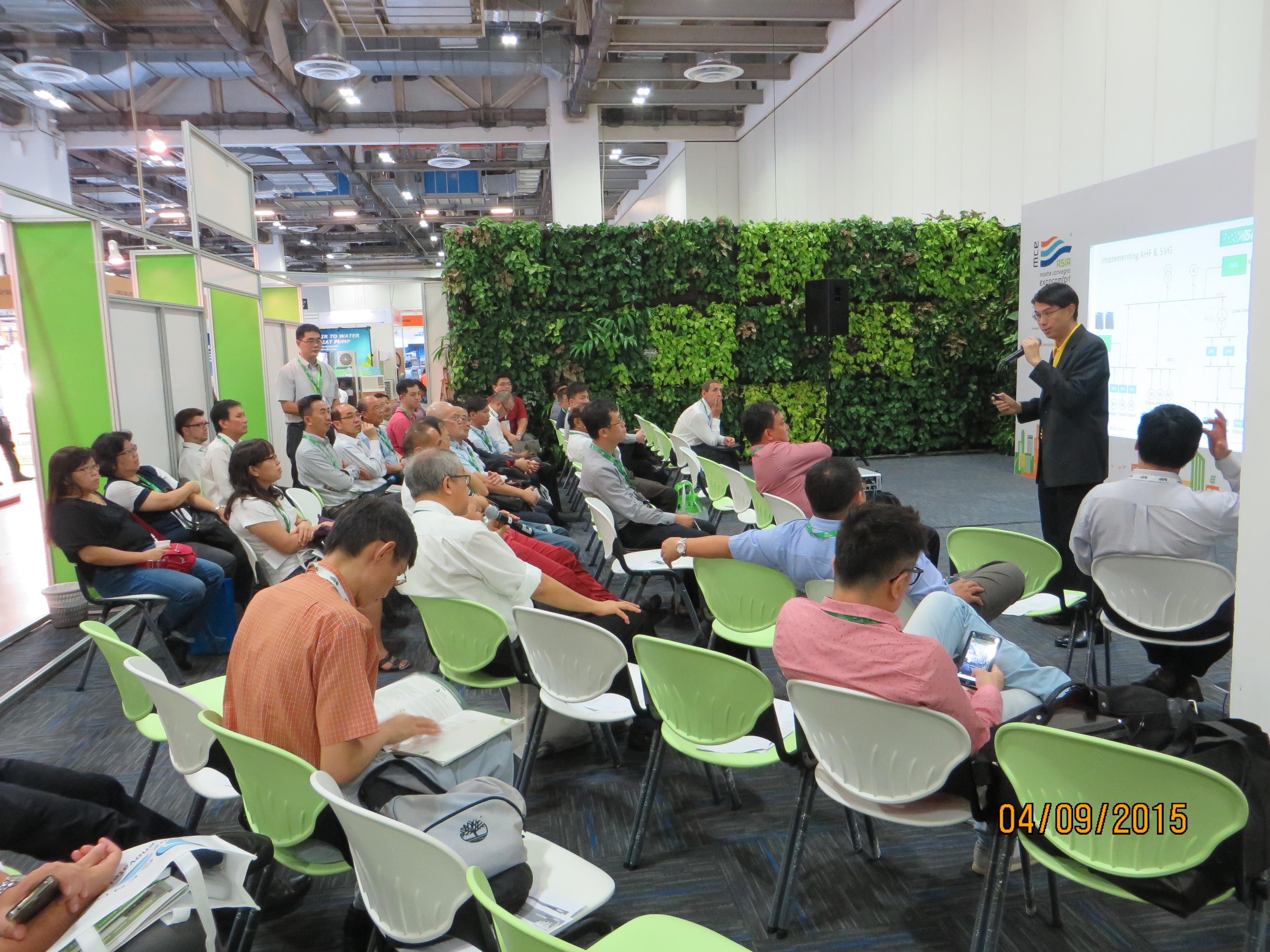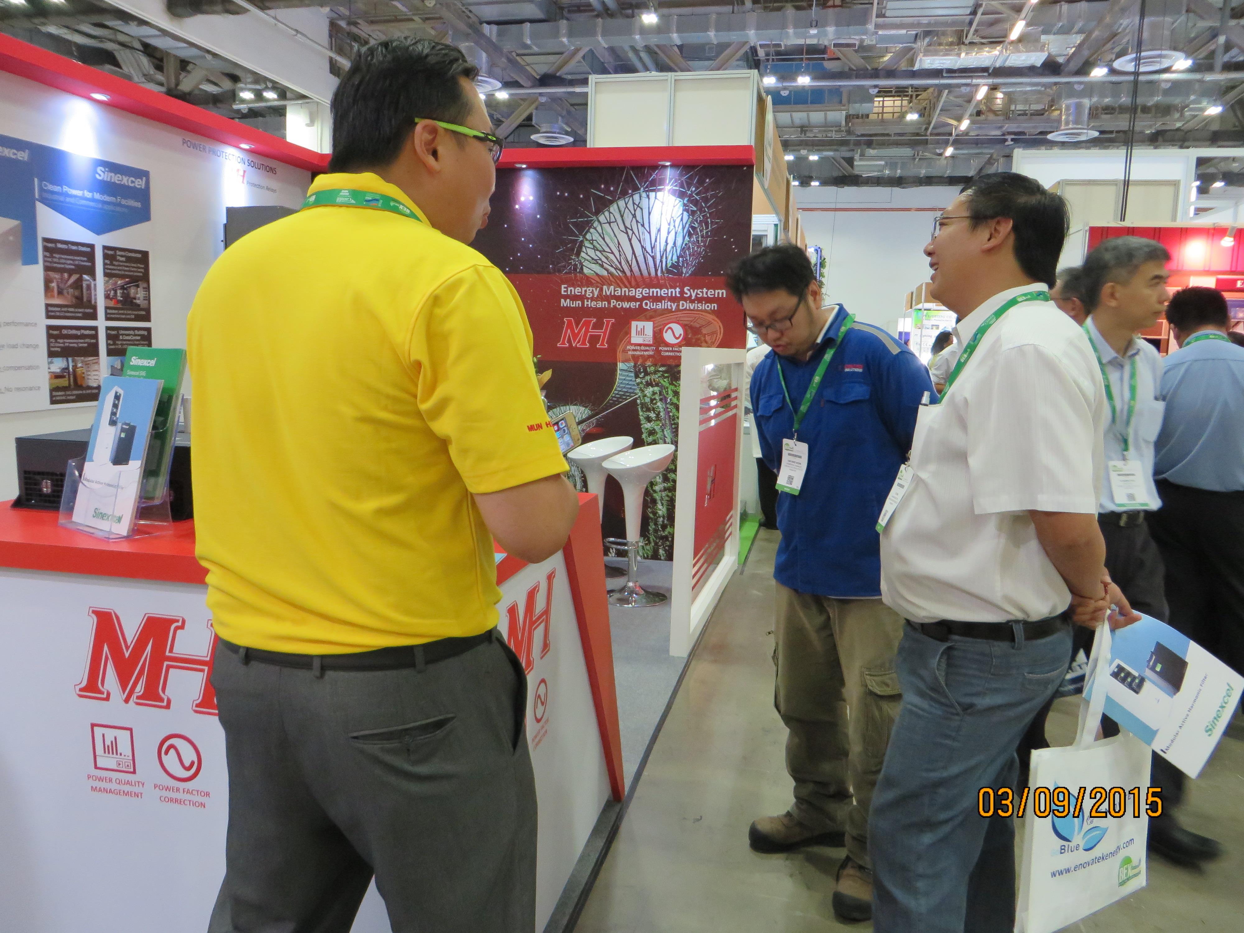 During the BEXasia 2015, Mun Hean was featured in the GreenView technical seminar. Power Quality Specialist, Mr Chee Khar Chit, delivered a talk on the subject of ‘Solving Harmonics and Power Quality Issues in Modern Building’. The talk addressed the increasingly prominent topic about the damage caused and costs incurred by businesses over the disruption of electrical supply. Latest development in continuous monitoring and IGBT circuit technology have brought about a viable solution in solving these challenges.